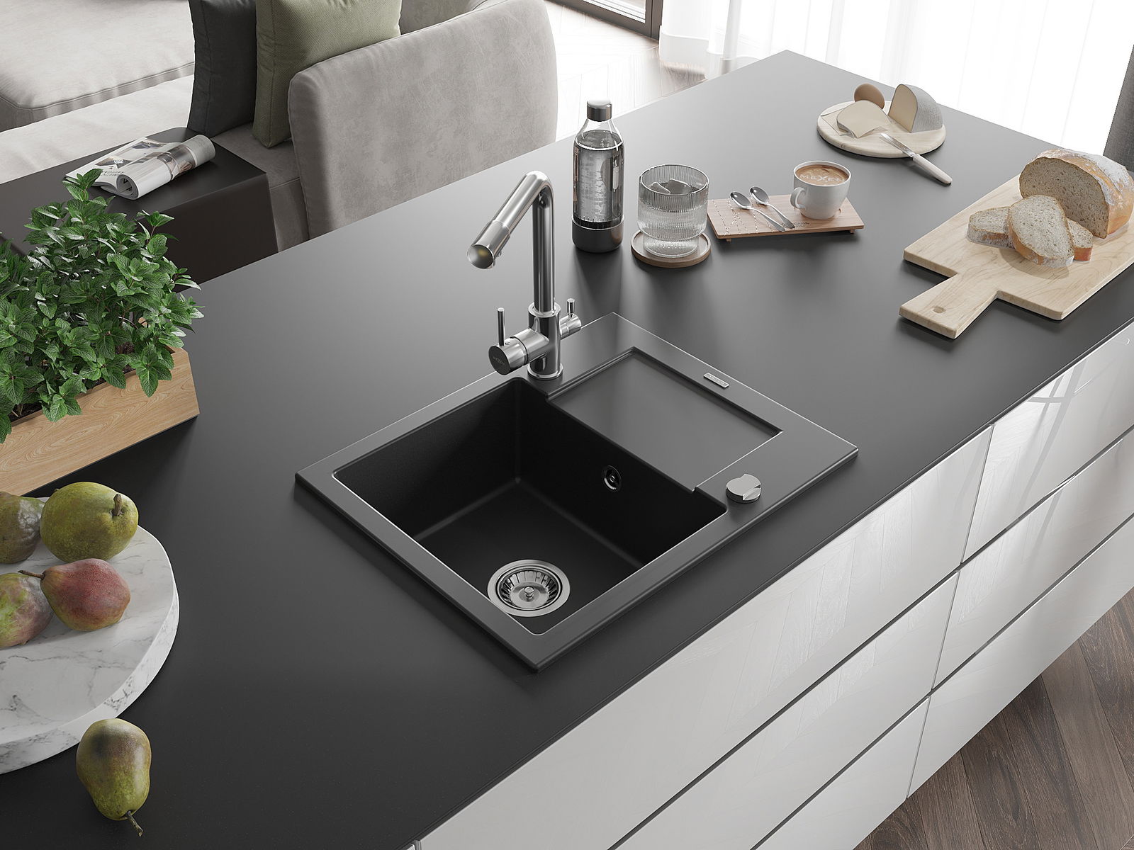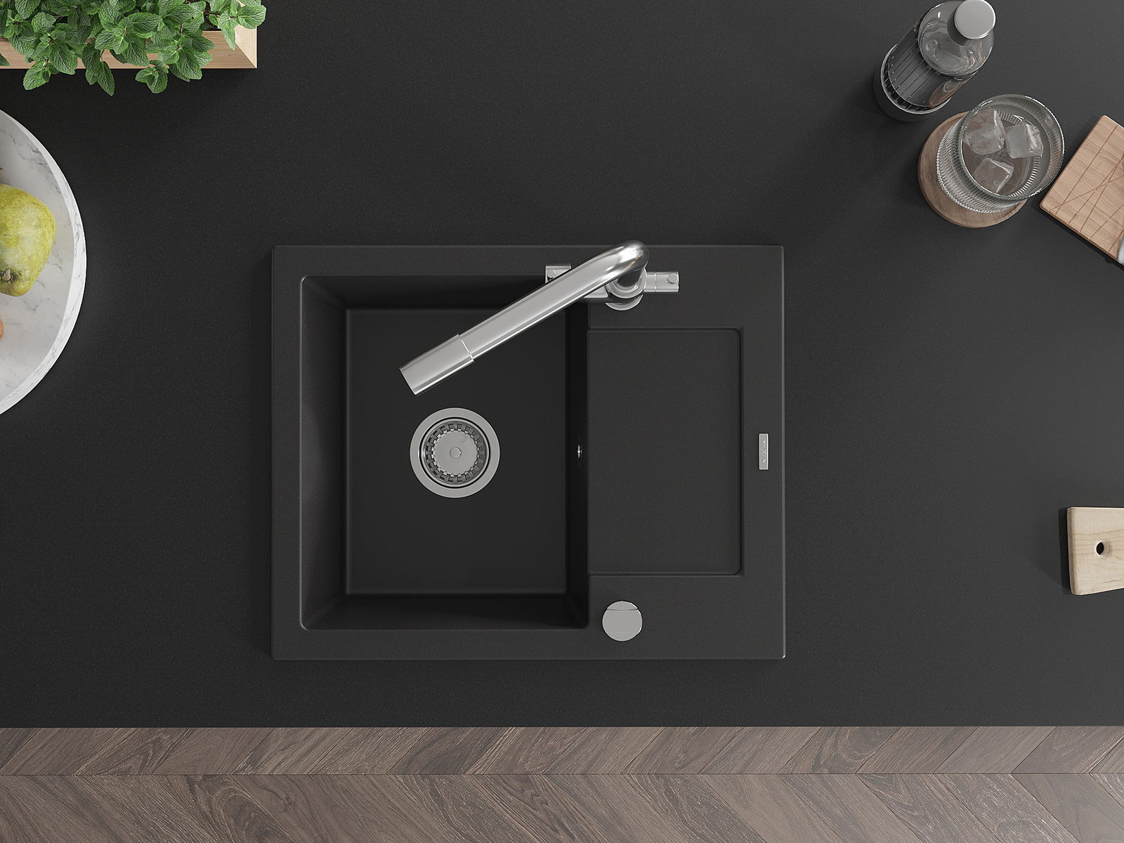 El fregadero está hecho de granito de alta calidad. Constituye un complemento elegante y, sobre todo, práctico para cualquier cocina, independientemente de su estilo. La alta calidad y durabilidad del granito aseguran un uso durante muchos años.