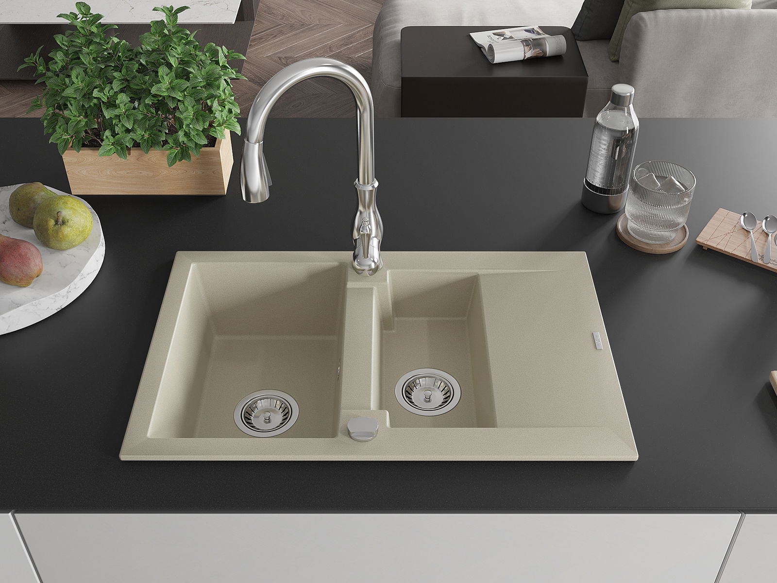 El fregadero está hecho de granito de alta calidad. Constituye un complemento elegante y, sobre todo, práctico para cualquier cocina, independientemente de su estilo. La alta calidad y durabilidad del granito aseguran un uso durante muchos años.