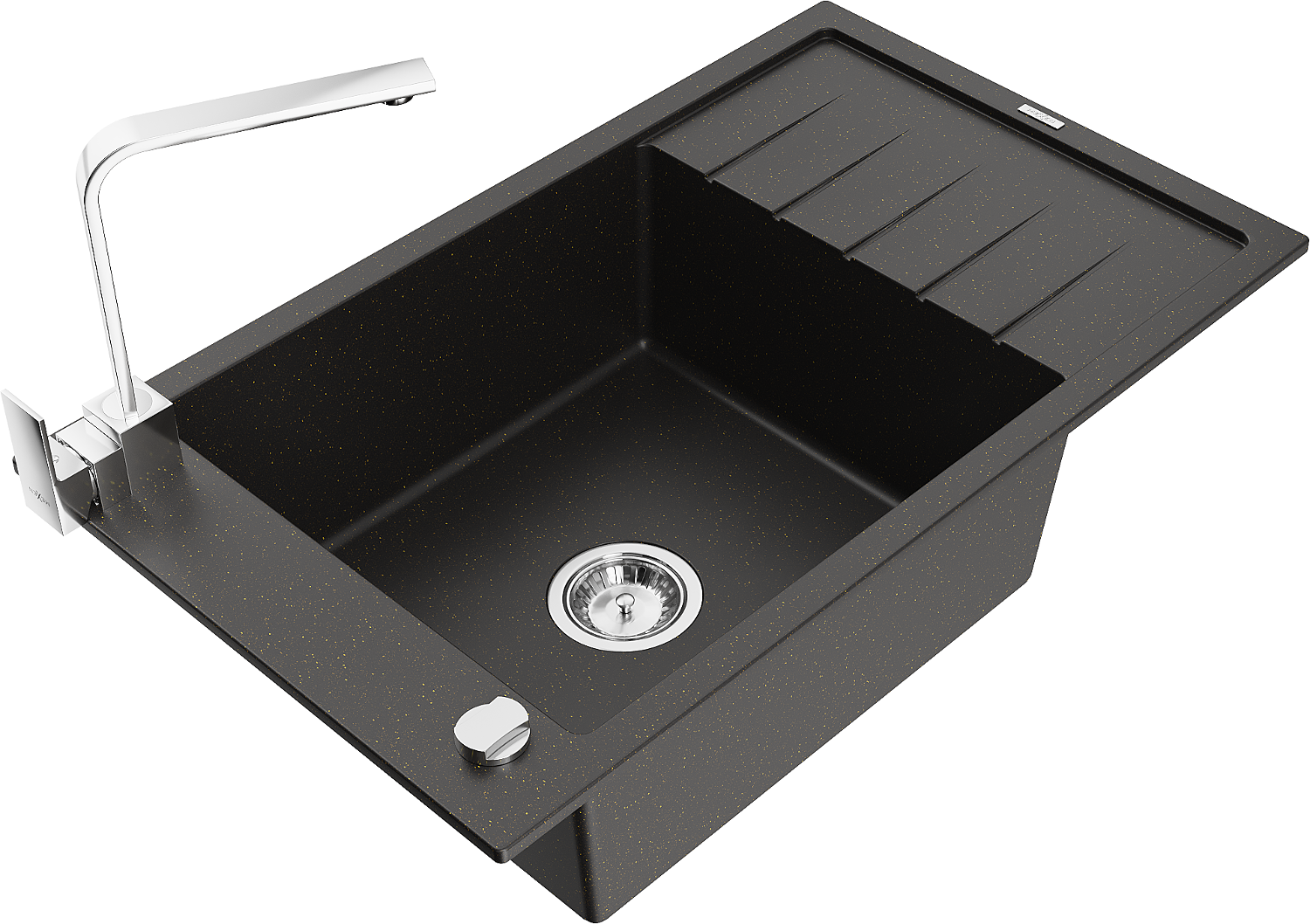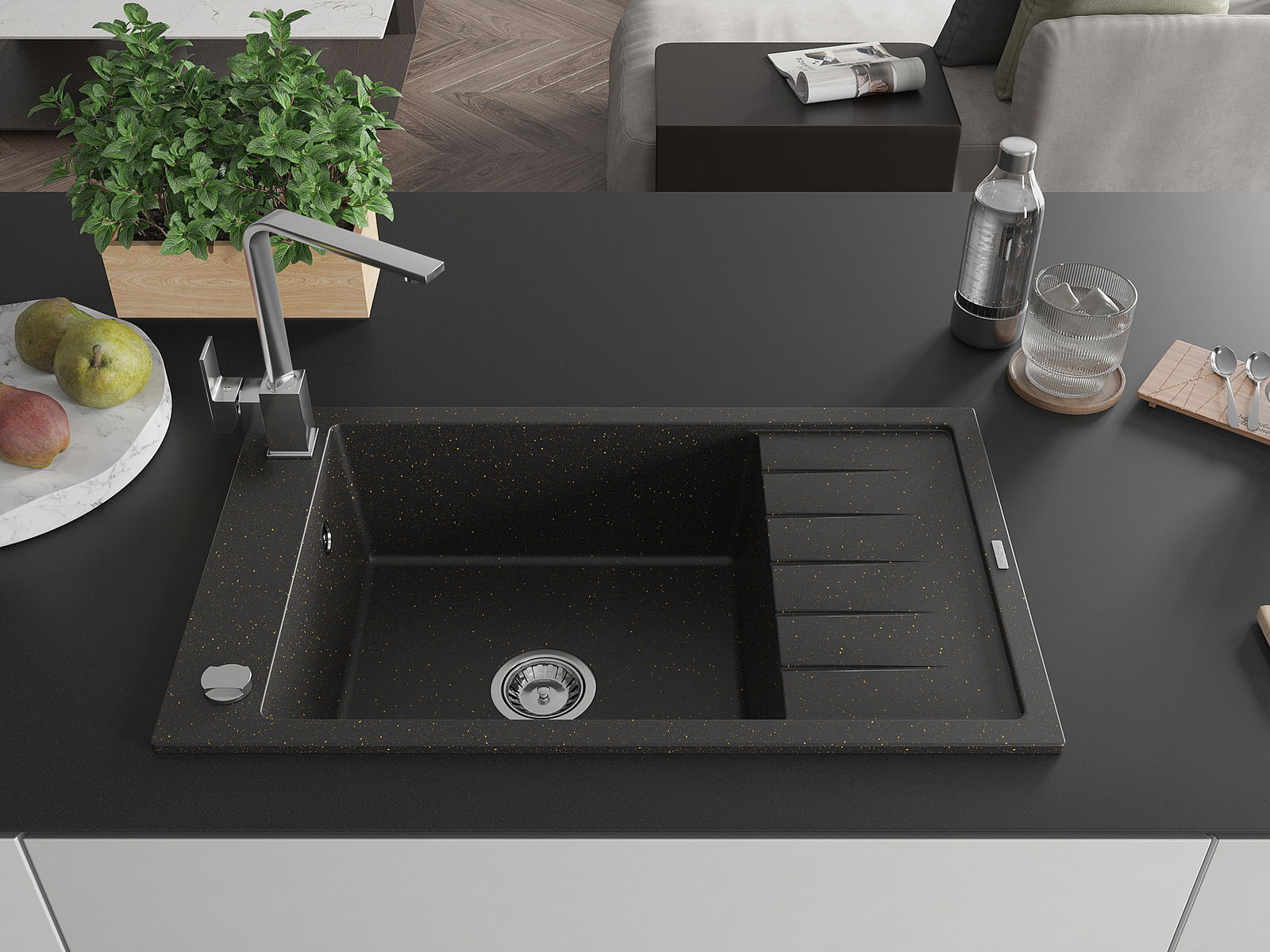 El fregadero está hecho de granito de alta calidad. Constituye un complemento elegante y, sobre todo, práctico para cualquier cocina, independientemente de su estilo. La alta calidad y durabilidad del granito aseguran un uso durante muchos años.