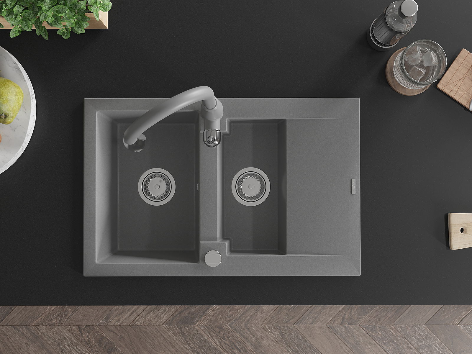 El fregadero está hecho de granito de alta calidad. Constituye un complemento elegante y, sobre todo, práctico para cualquier cocina, independientemente de su estilo. La alta calidad y durabilidad del granito aseguran un uso durante muchos años.
