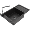 Mexen Elias fregadero de granito 1-cubeta con escurridor y grifo de cocina Rita, negro - 6511-77-670300-70-B