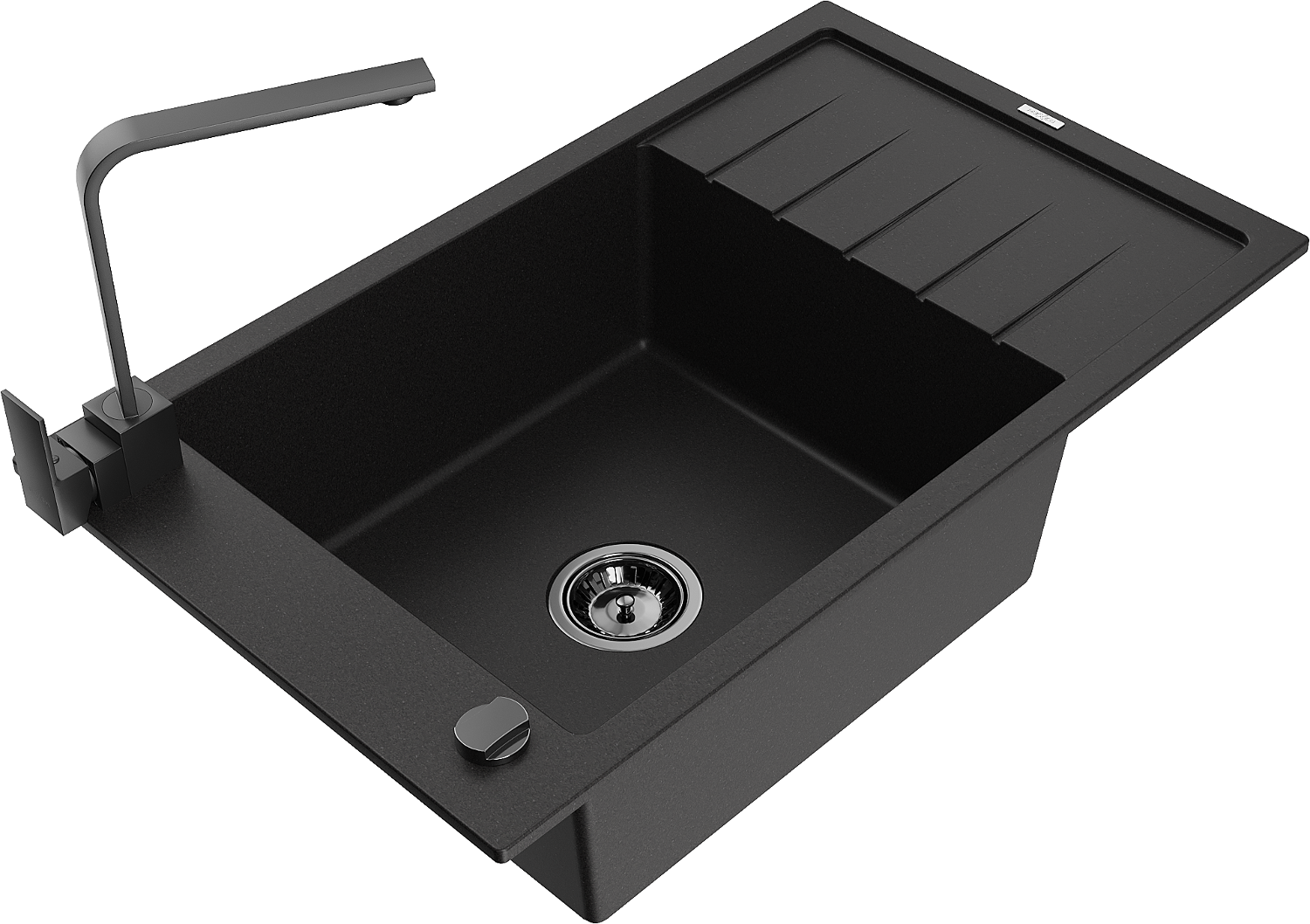El fregadero está hecho de granito de alta calidad. Constituye un complemento elegante y, sobre todo, práctico para cualquier cocina, independientemente de su estilo. La alta calidad y durabilidad del granito aseguran un uso durante muchos años.