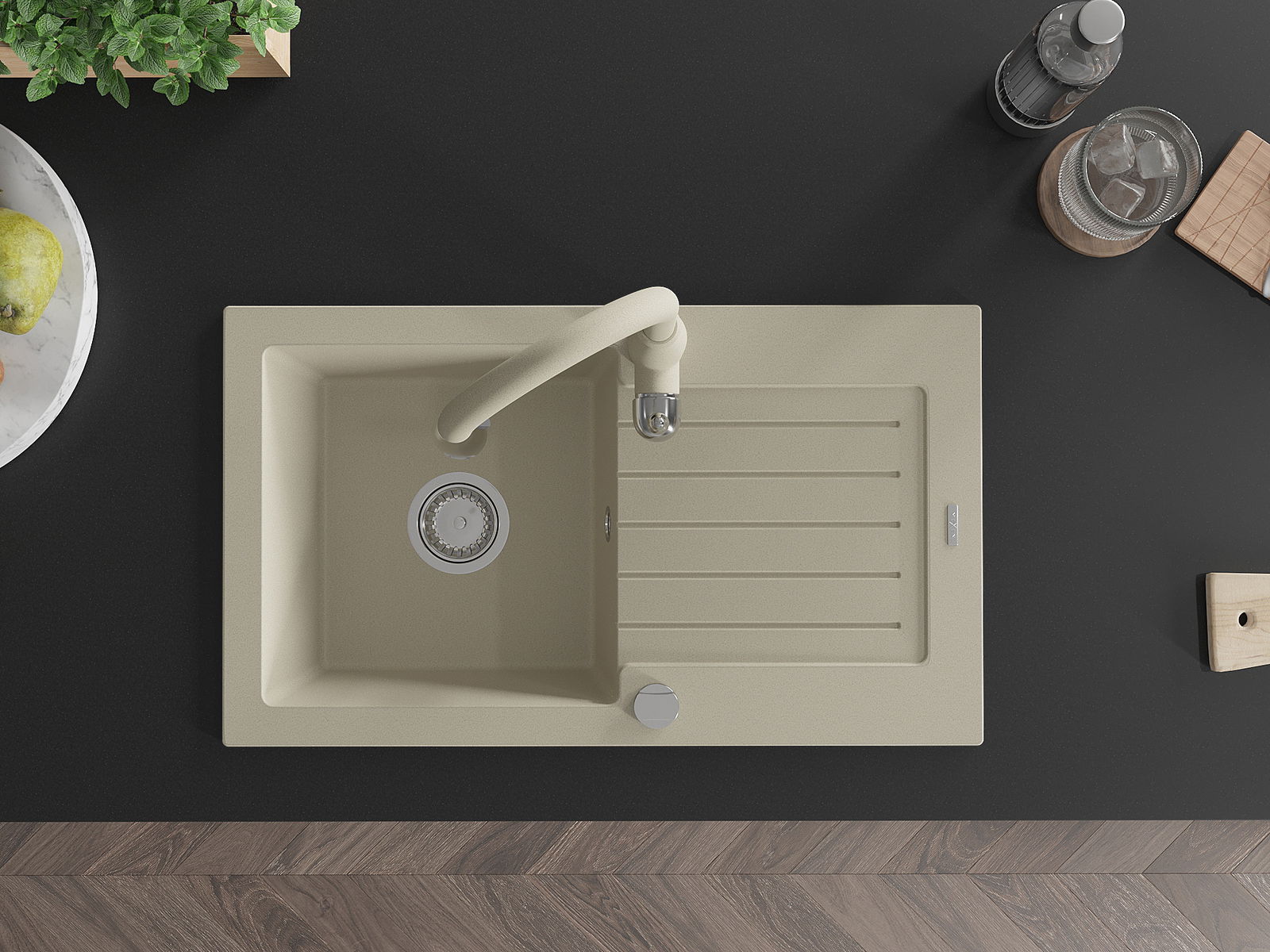 El fregadero está hecho de granito de alta calidad. Constituye un complemento elegante y, sobre todo, práctico para cualquier cocina, independientemente de su estilo. La alta calidad y durabilidad del granito aseguran un uso durante muchos años.