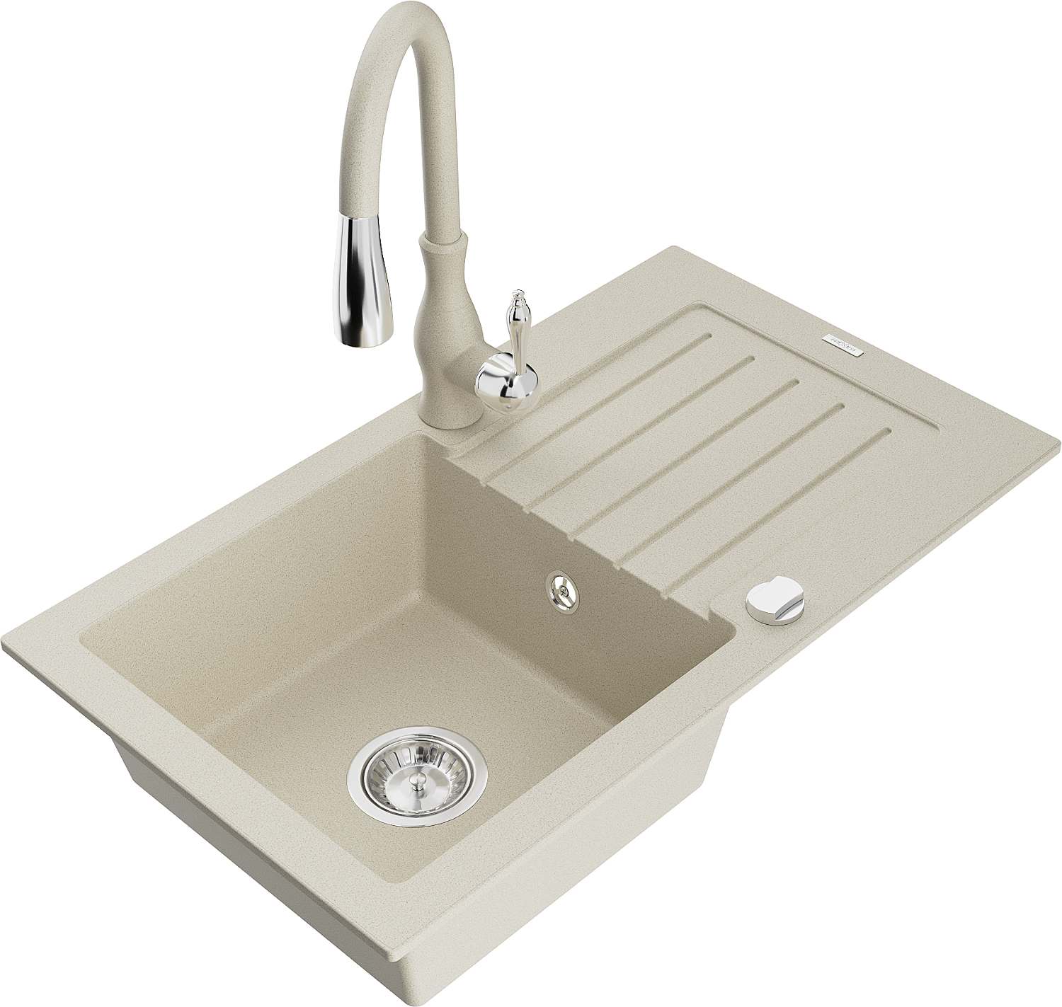 Mexen Pablo fregadero de granito de 1 cubeta con escurridor y grifo de cocina Savita, beige - 6510-69-672601-69