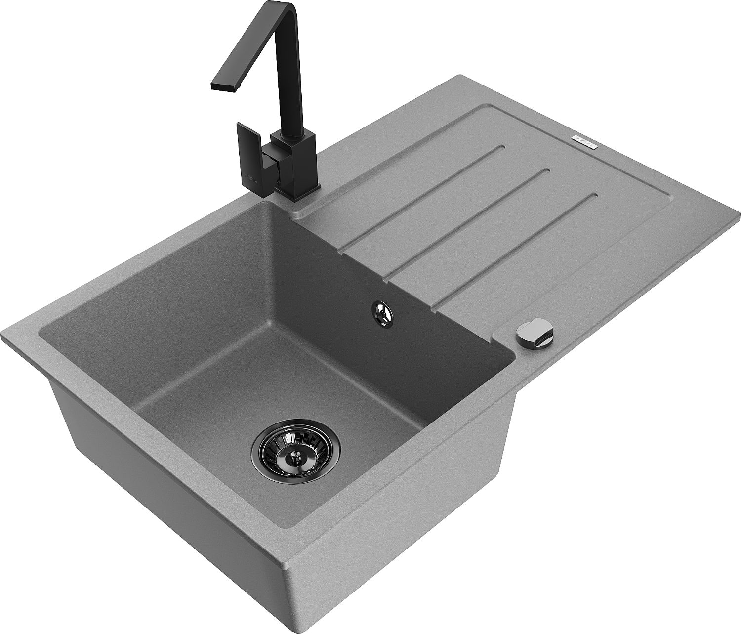 Mexen Bruno fregadero de cocina de granito de 1 seno con escurridor y grifo Rita, gris - 6513-71-670300-70-B