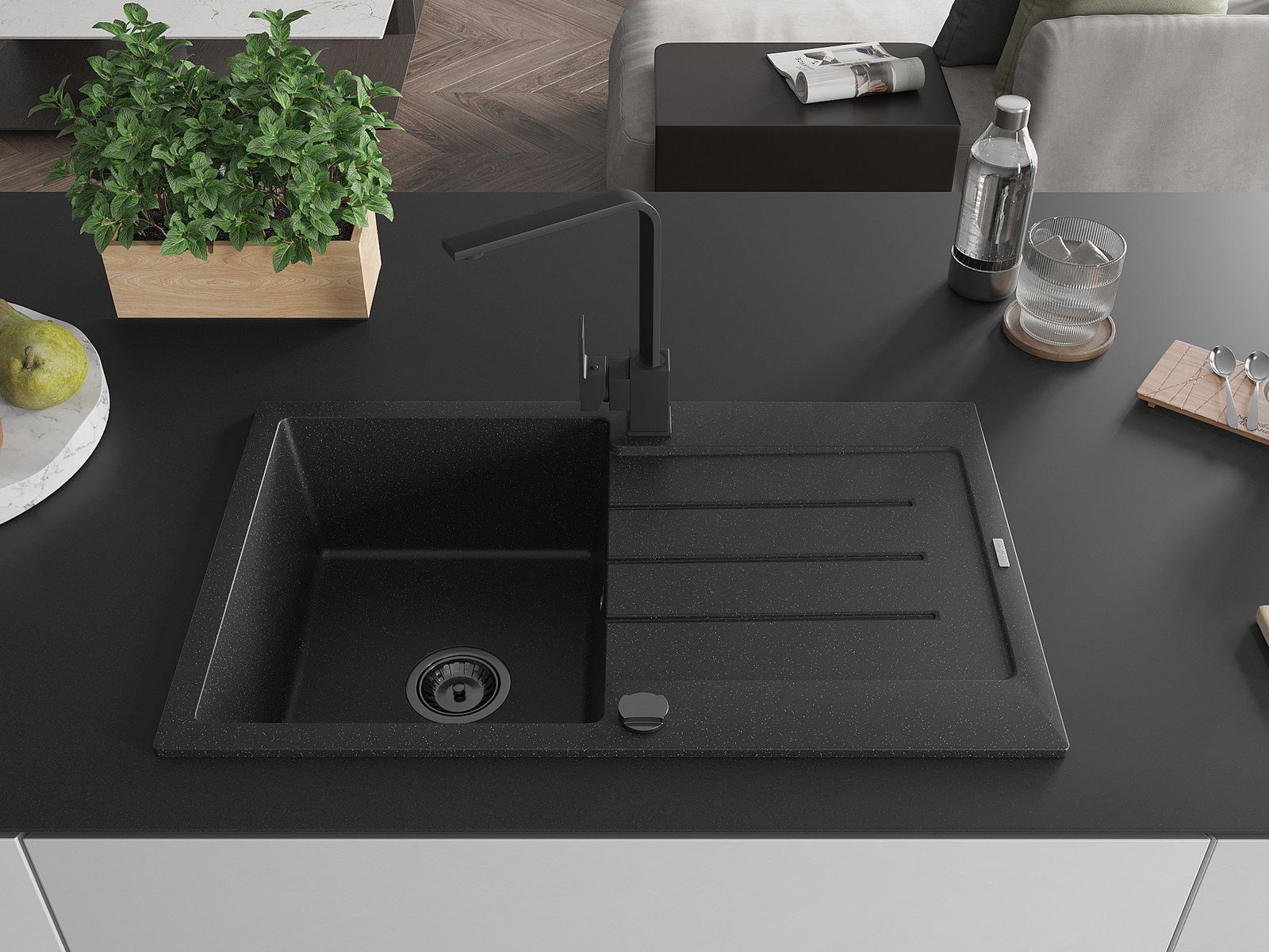 El fregadero está hecho de granito de alta calidad. Constituye un complemento elegante y, sobre todo, práctico para cualquier cocina, independientemente de su estilo. La alta calidad y durabilidad del granito aseguran un uso durante muchos años.