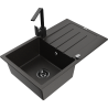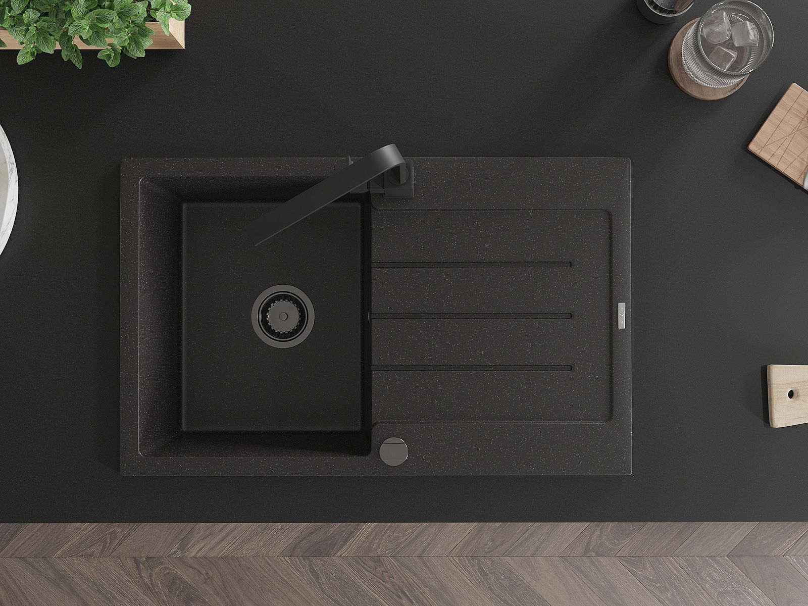 Mexen Bruno fregadero de granito de 1 cubeta con escurridor y grifo de cocina Rita, negro/plateado metálico