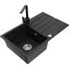 Mexen Bruno fregadero de granito de 1 cubeta con escurridor y grifo de cocina Rita, negro/metalizado plateado