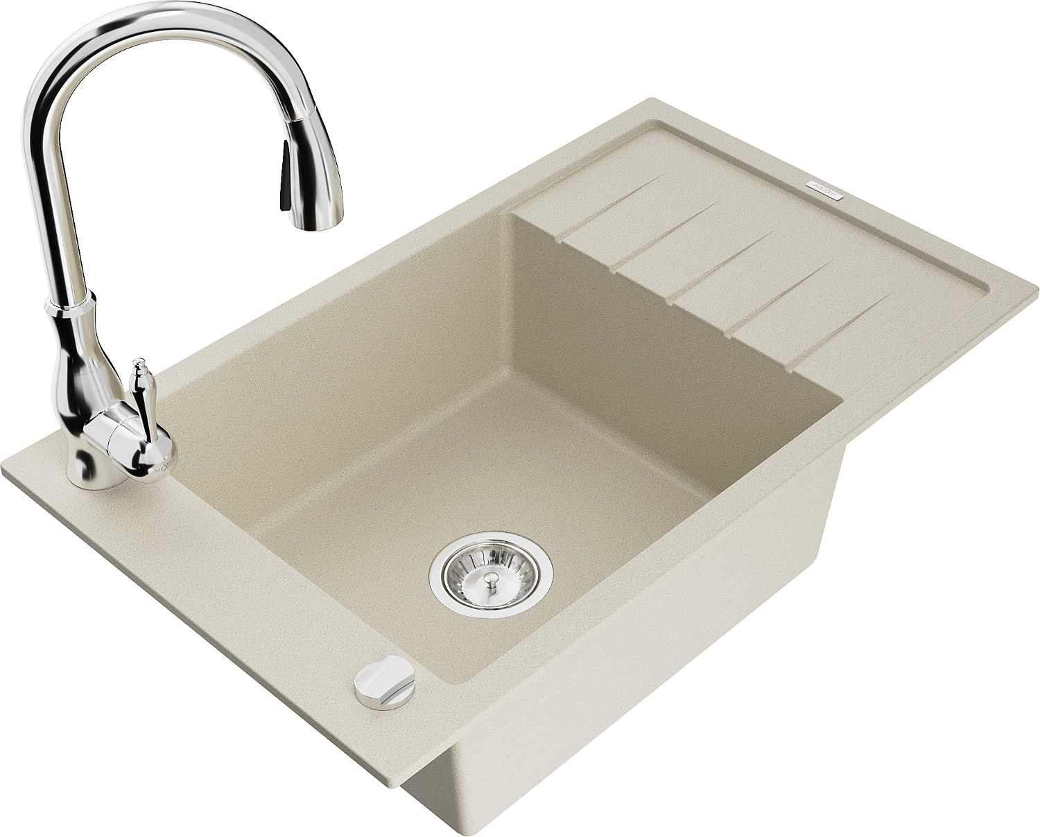 Mexen Elias fregadero de granito de 1 cubeta con escurridor y grifo de cocina Savita, beige - 6511-69-672601-00