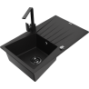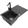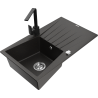Mexen Cesar fregadero de granito de 1 cubeta con escurridor y grifo de cocina Rita, negro/metálico plateado - 6514-73-670300-70