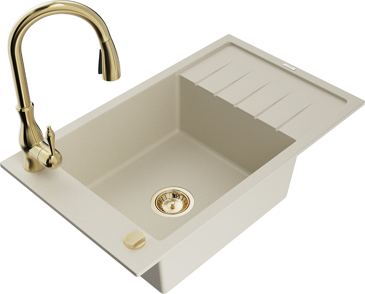 Mexen Elias fregadero de granito 1-cámara con escurridor y grifo de cocina Savita, beige - 6511-69-672601-50