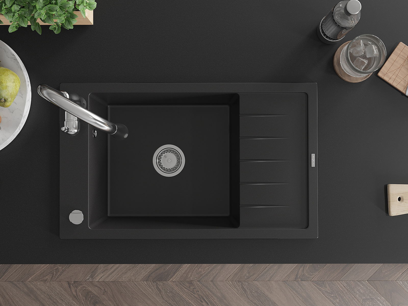 El fregadero está hecho de granito de alta calidad. Constituye un complemento elegante y, sobre todo, práctico para cualquier cocina, independientemente de su estilo. La alta calidad y durabilidad del granito aseguran un uso durante muchos años.