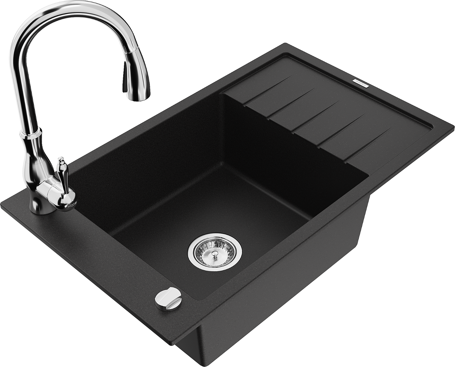 Mexen Elias fregadero de granito de 1 seno con escurridor y grifo de cocina Savita, negro - 6511-77-672601-00