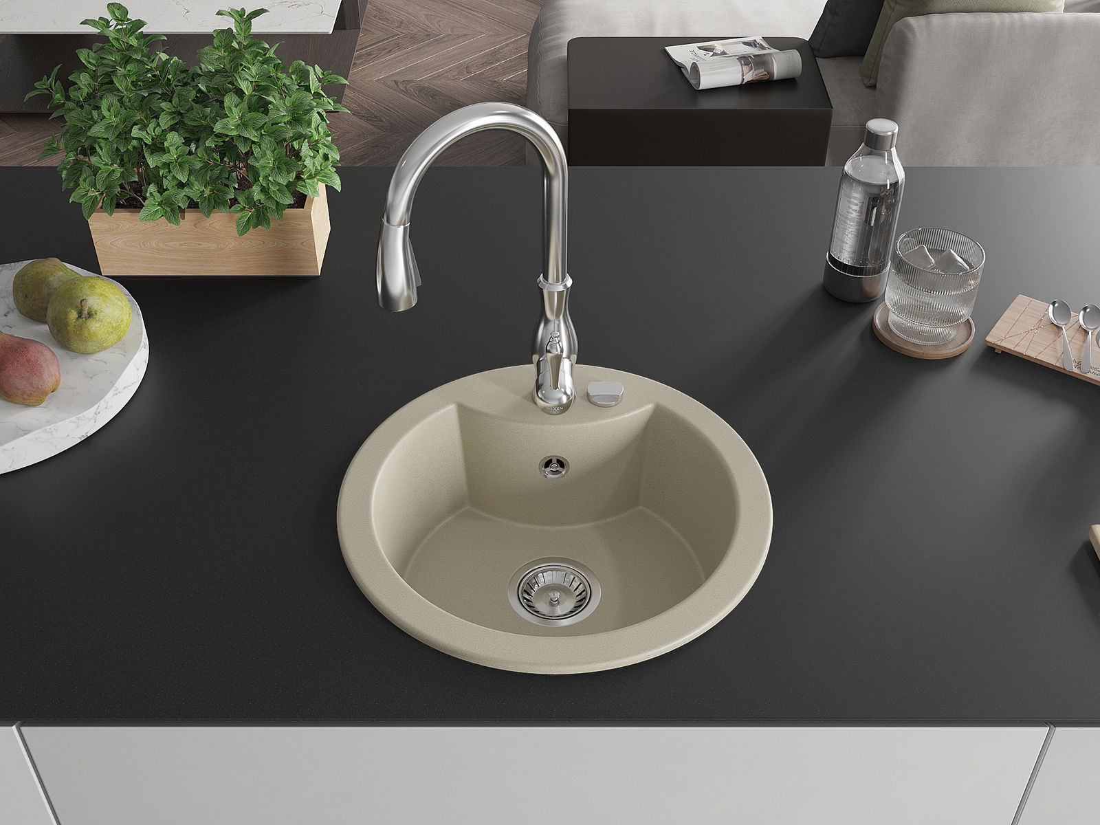 El fregadero está hecho de granito de alta calidad. Es un complemento elegante y, sobre todo, práctico para cualquier cocina, independientemente de su estilo. La alta calidad y durabilidad del granito aseguran un uso prolongado durante años.