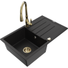 Mexen Bruno fregadero de granito de 1 cubeta con escurridor y grifo de cocina Savita, negro moteado - 6513-76-672601-50