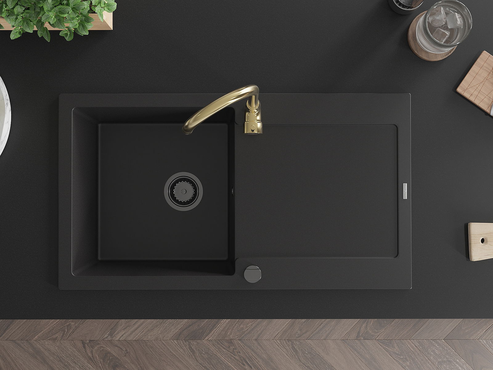 El fregadero está hecho de granito de alta calidad. Constituye un complemento elegante y, sobre todo, práctico para cualquier cocina, independientemente de su estilo. La alta calidad y durabilidad del granito aseguran un uso durante muchos años.