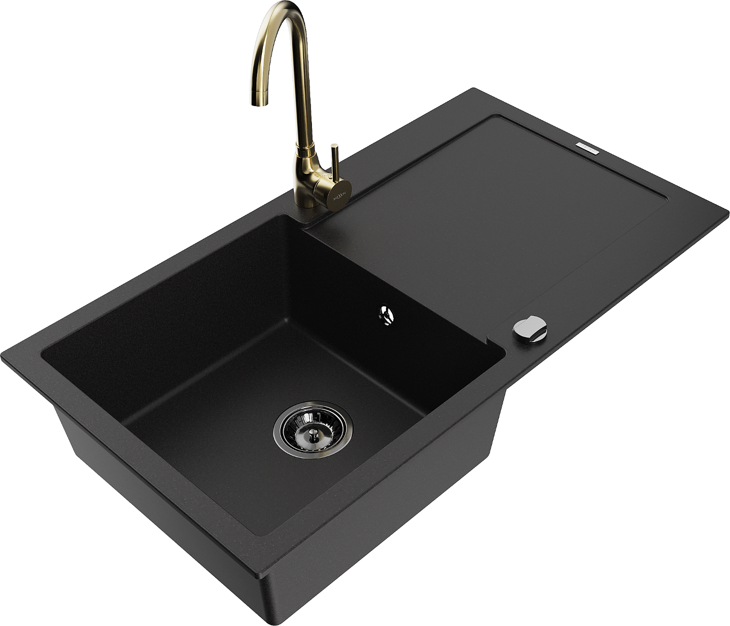 Mexen Leo fregadero de granito de 1 cubeta con escurridor y grifo de cocina Telma, negro - 6501-77-670200-50-B