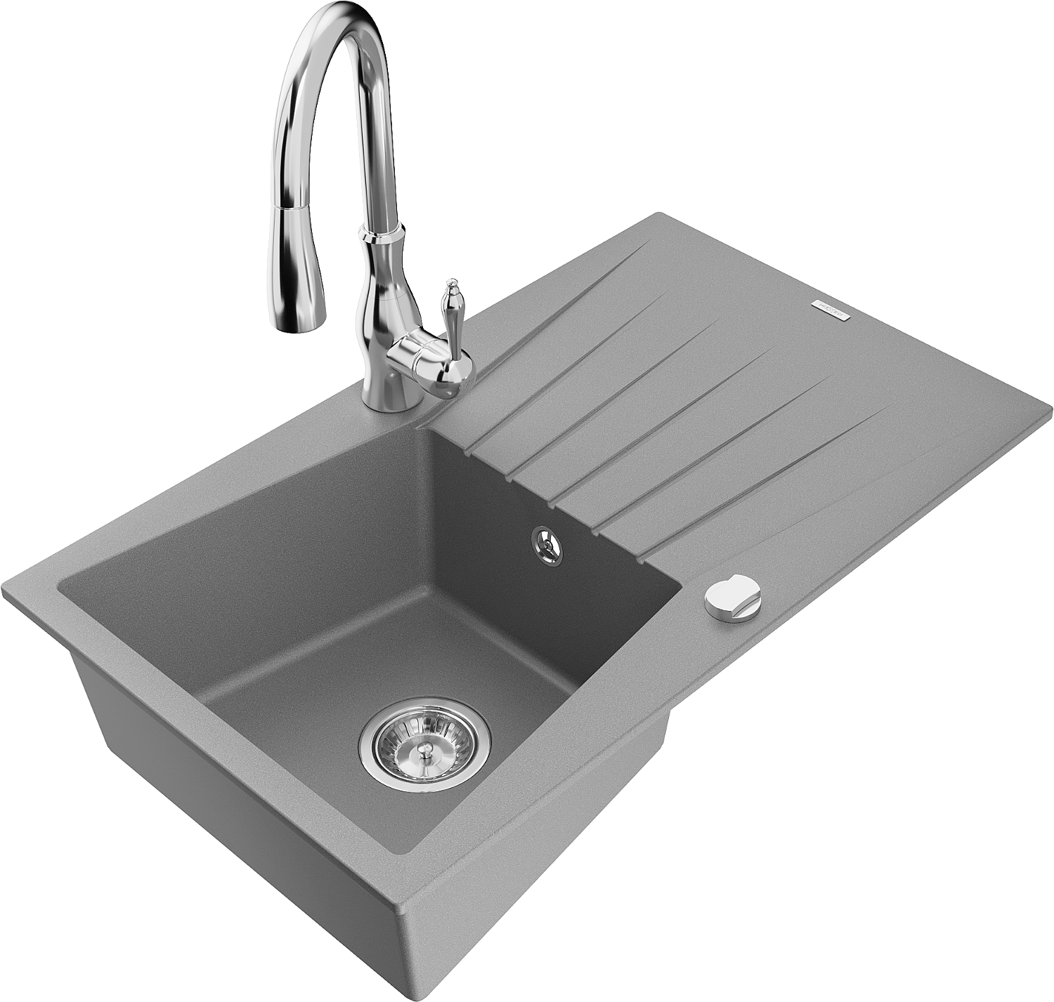 Mexen Cesar fregadero de granito de 1 seno con escurridor y grifo de cocina Savita, gris - 6514-71-672601-00