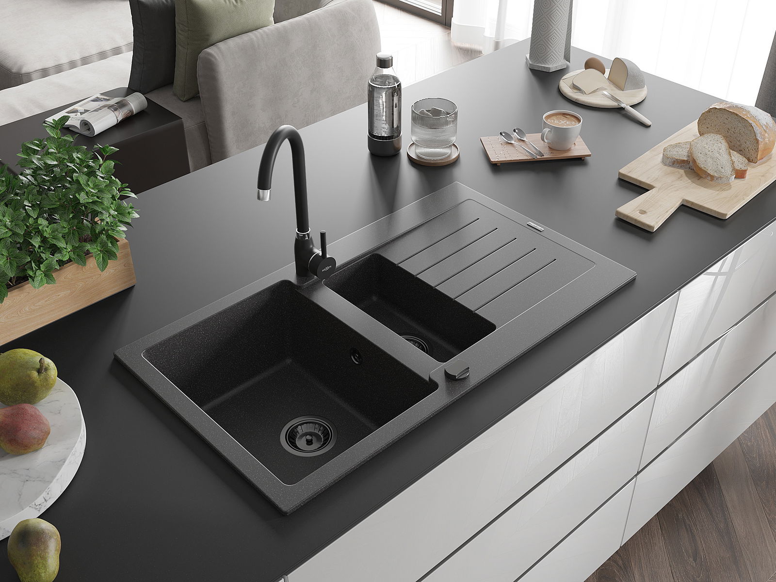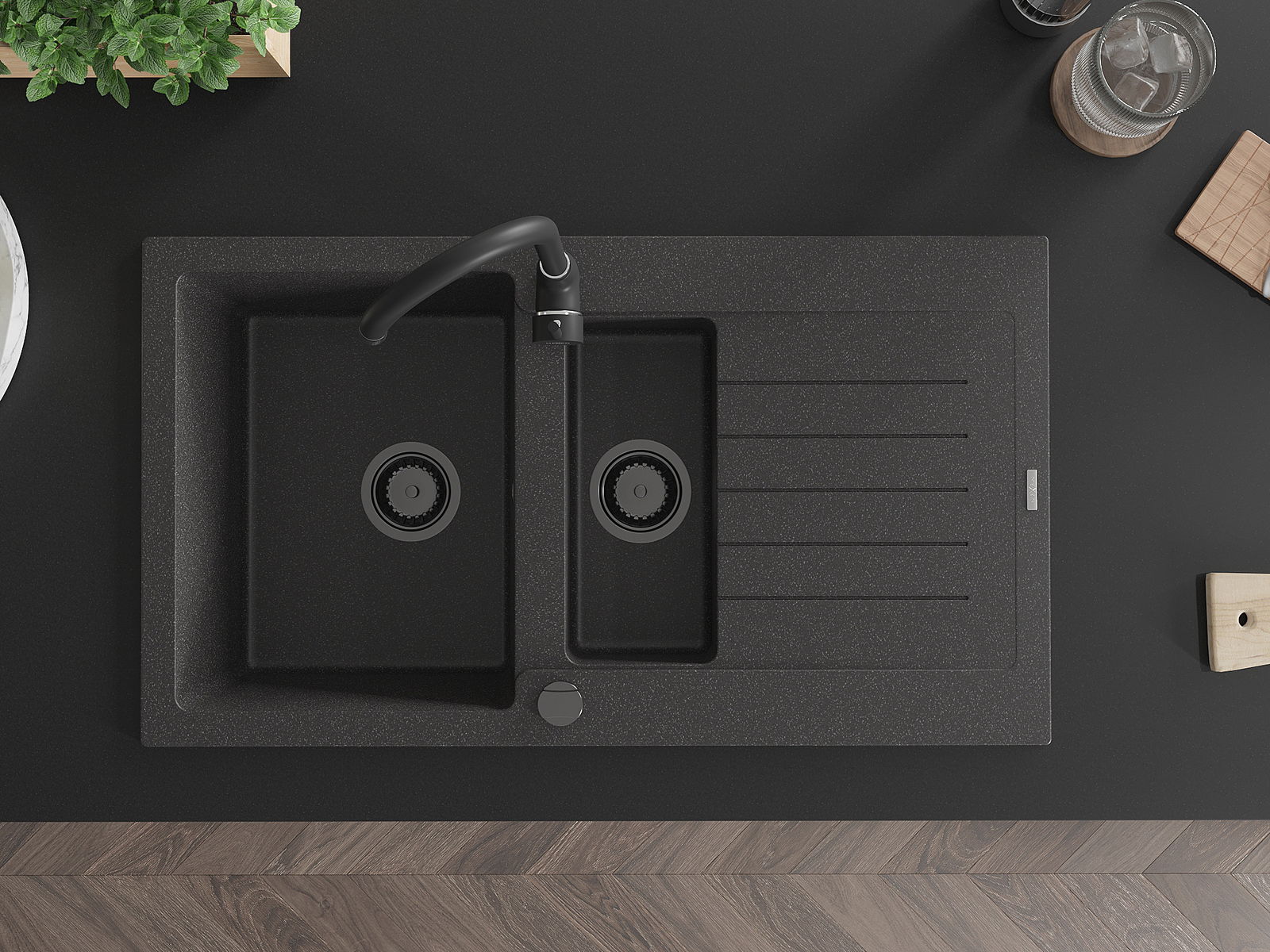 El fregadero está hecho de granito de alta calidad. Constituye un complemento elegante y, sobre todo, práctico para cualquier cocina, independientemente de su estilo. La alta calidad y durabilidad del granito aseguran un uso durante muchos años.