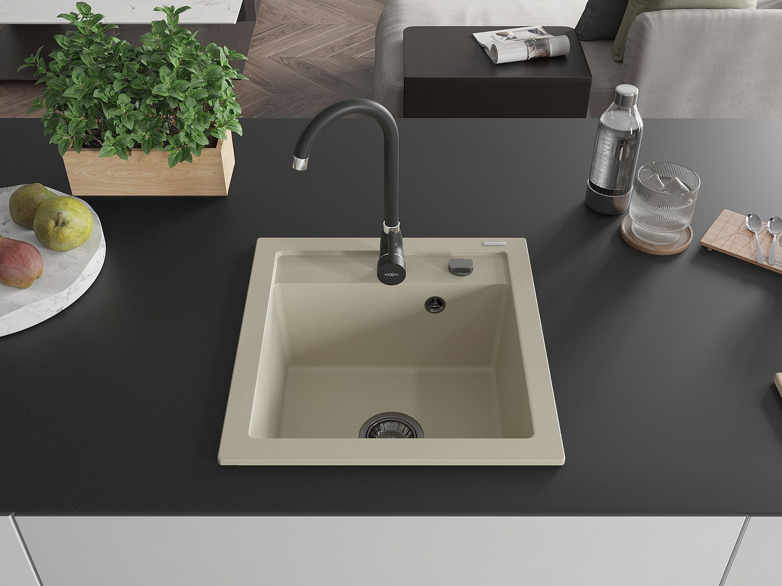 El fregadero está hecho de granito de alta calidad. Constituye un complemento elegante y, sobre todo, práctico para cualquier cocina, independientemente de su estilo. La alta calidad y durabilidad del granito aseguran un uso durante muchos años.