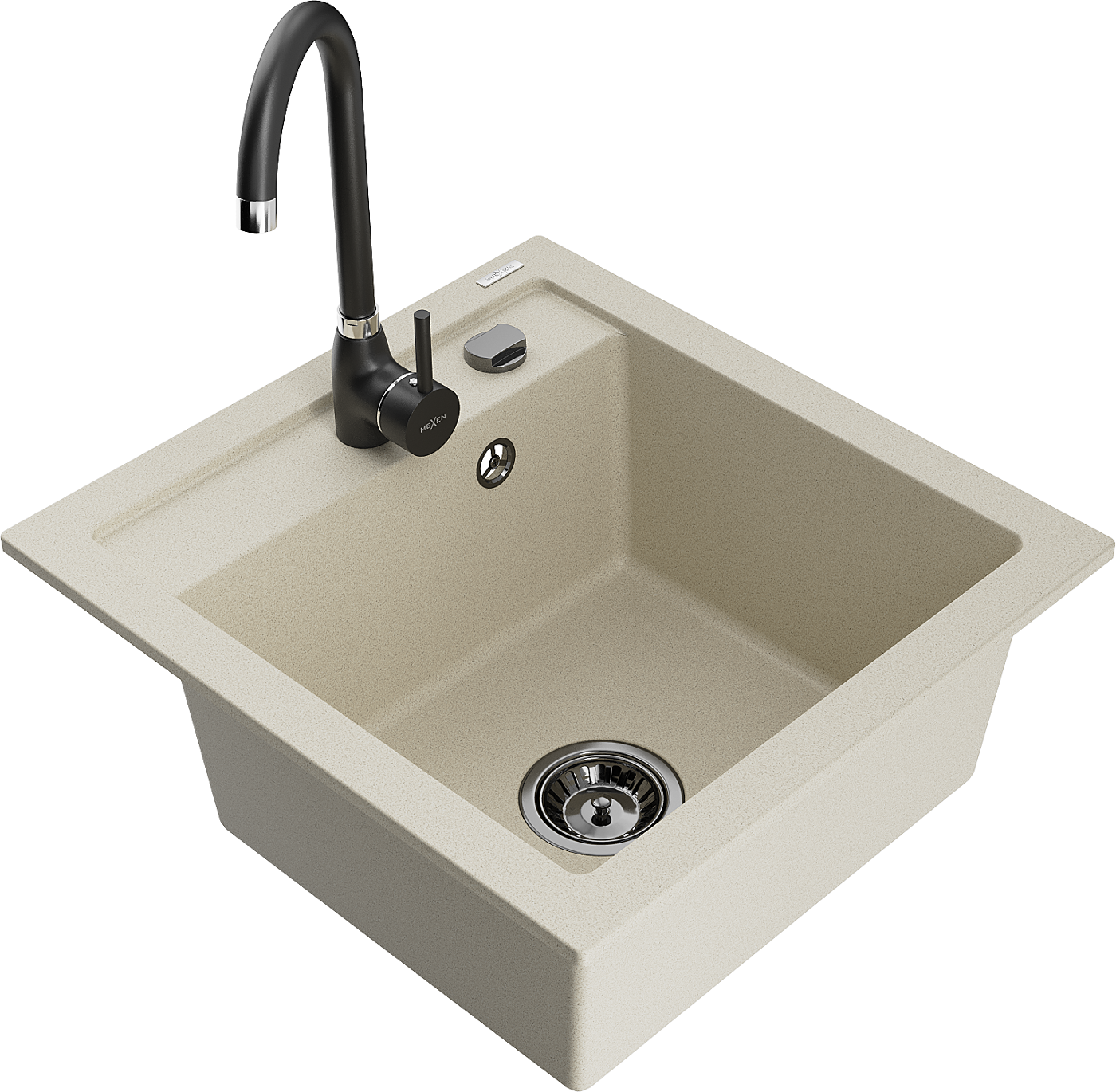 Mexen Vito fregadero de granito de 1 cubeta con grifo de cocina Telma, beige - 6503-69-670200-70