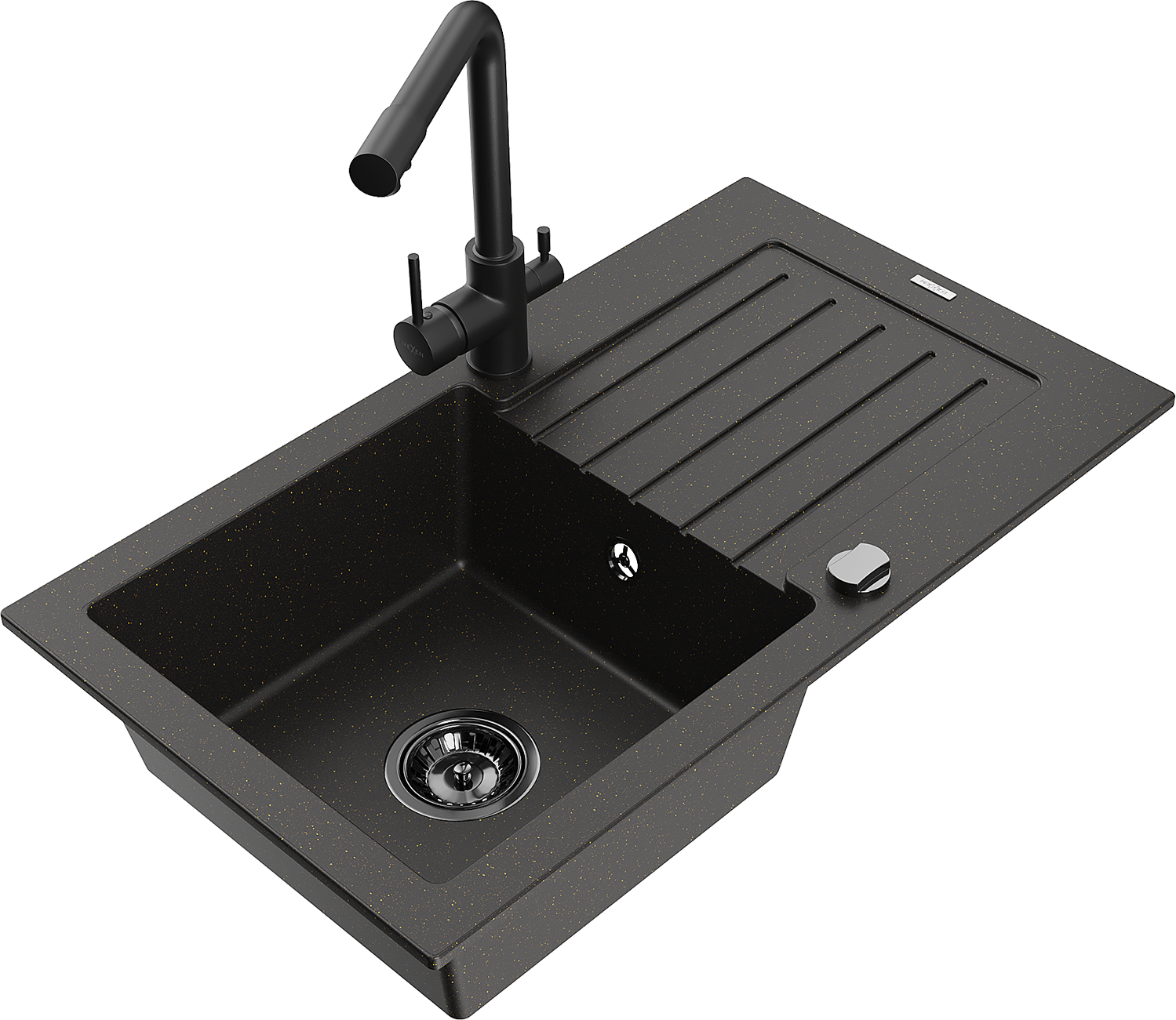 Mexen Pablo fregadero de granito de 1 seno con escurridor y grifo de cocina Duero, negro/oro metálico - 6510-75-671600-70-B