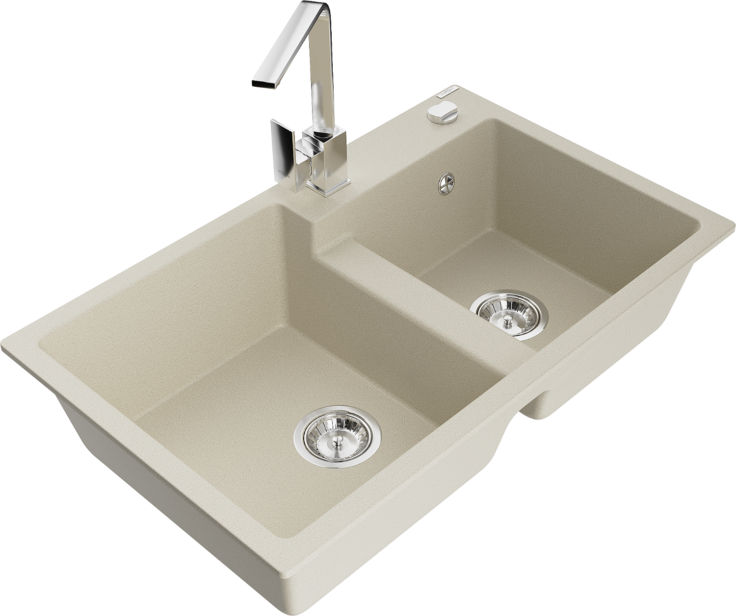 Mexen Tomas fregadero de cocina de granito de 2 compartimentos con grifo de cocina Rita, beige - 6516-69-670300-00
