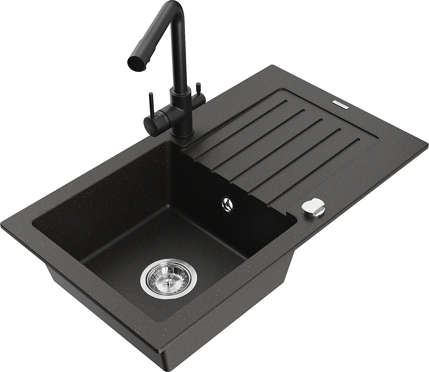 Mexen Pablo fregadero de granito de 1 seno con escurridor y grifo de cocina Duero, negro/dorado metálico - 6510-75-671600-70