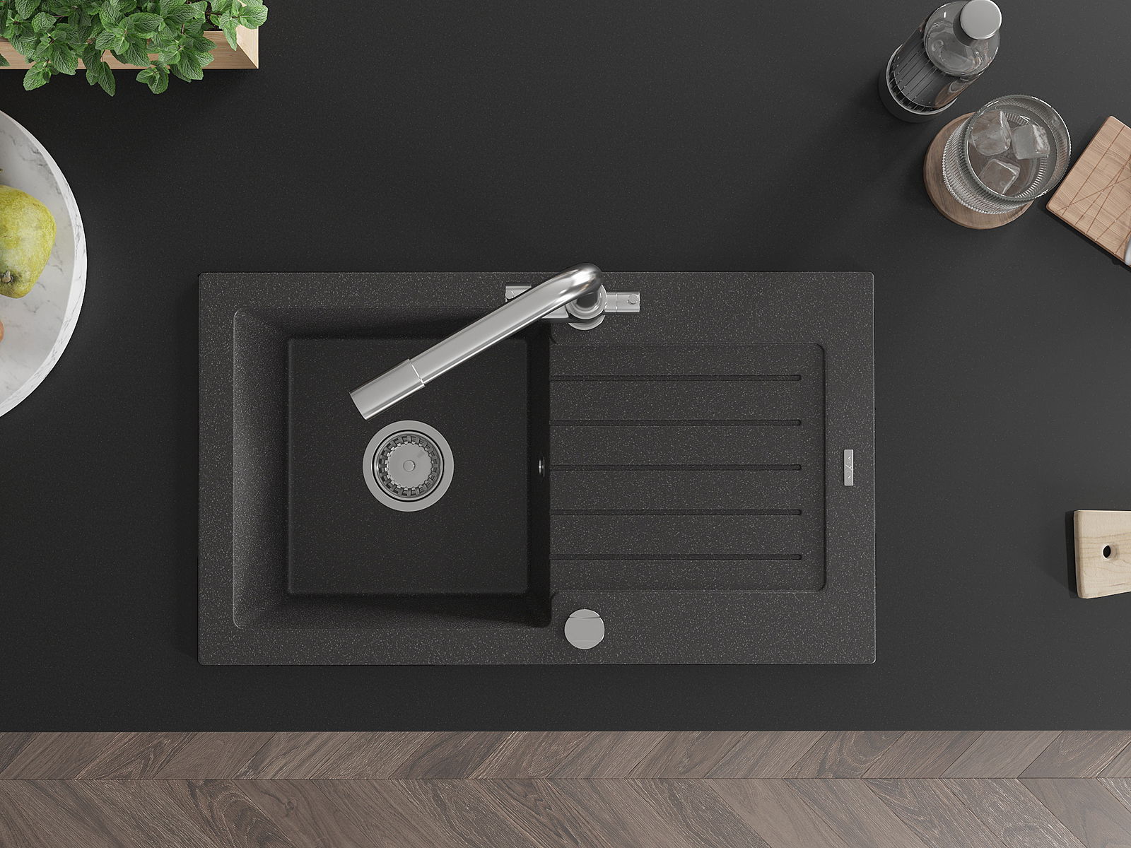 El fregadero está hecho de granito de alta calidad. Constituye un complemento elegante y, sobre todo, práctico para cualquier cocina, independientemente de su estilo. La alta calidad y durabilidad del granito aseguran un uso durante muchos años.