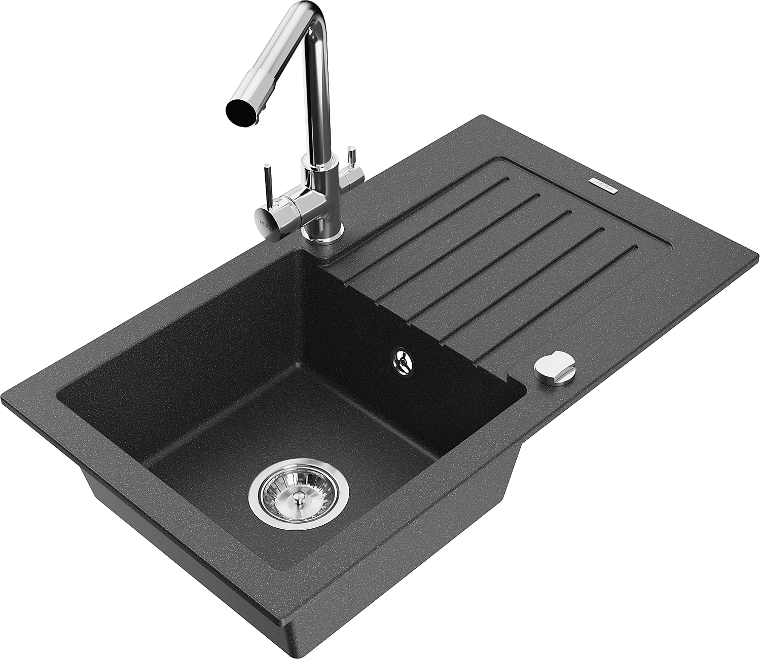 Mexen Pablo fregadero de granito de 1 seno con escurridor y grifo de cocina Duero, negro moteado - 6510-76-671600-00