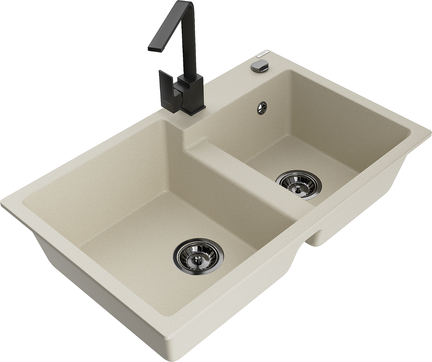 Mexen Tomas fregadero de granito de 2 compartimentos con grifo de cocina Rita, beige - 6516-69-670300-70