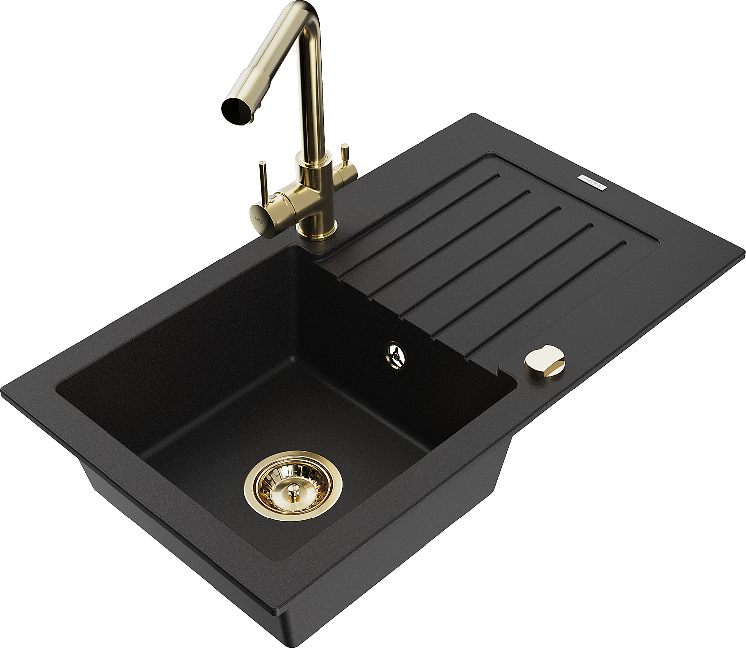 Mexen Pablo fregadero de granito de 1 seno con escurridor y grifo de cocina Duero, negro - 6510-77-671600-50