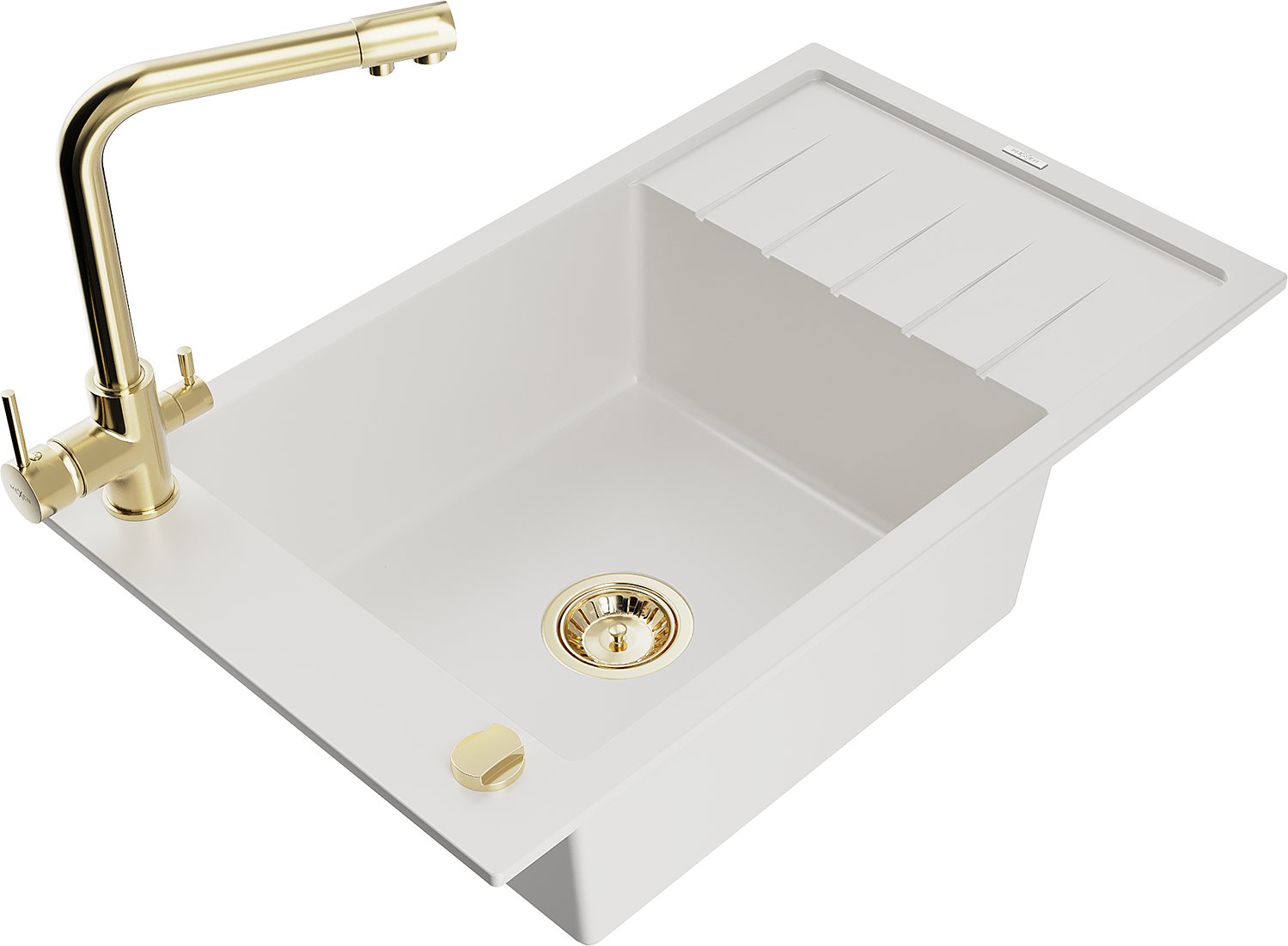 Mexen Elias fregadero de granito de 1 cubeta con escurridor y grifo de cocina Duero, blanco - 6511-20-671600-50