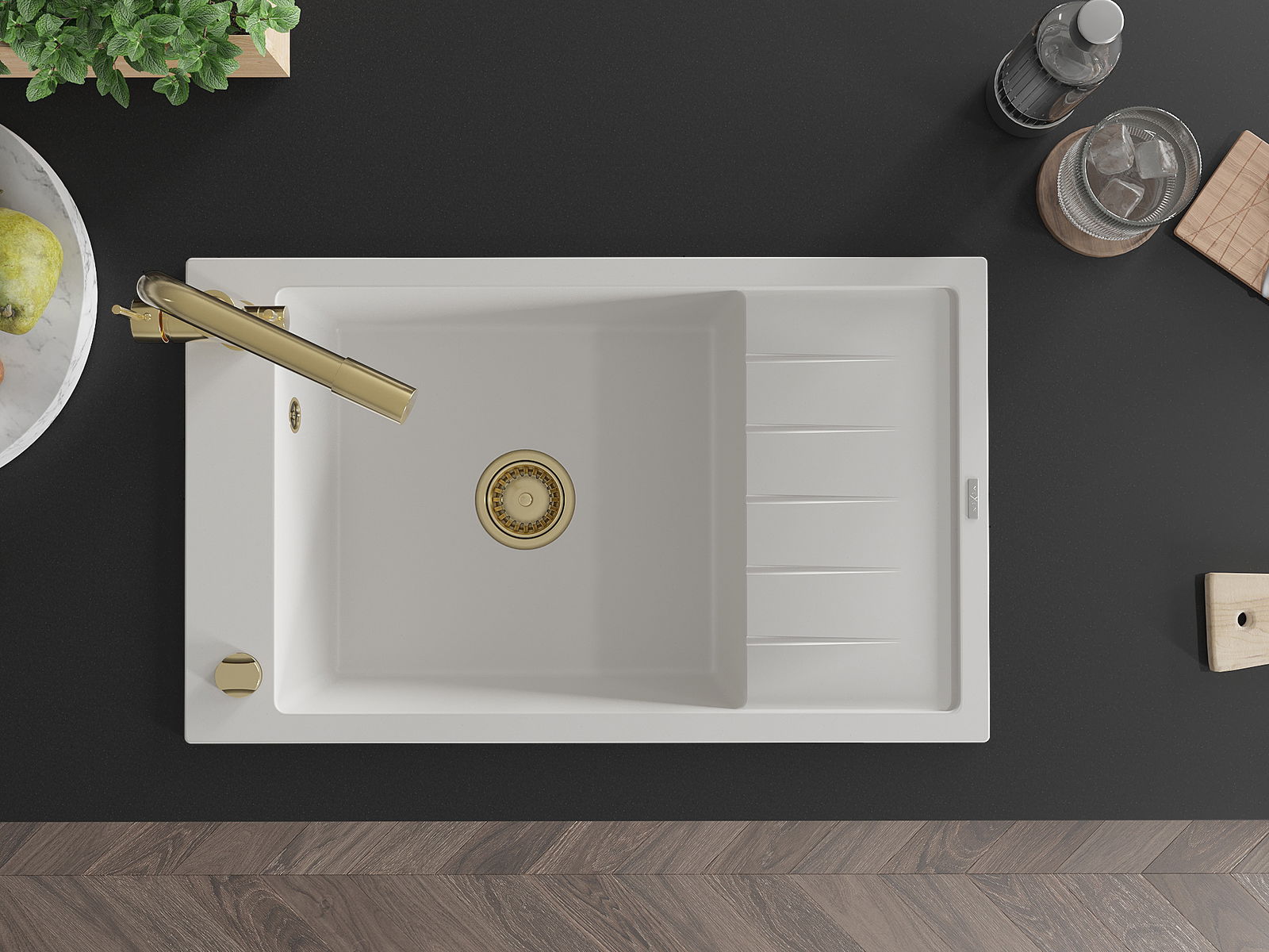 El fregadero está hecho de granito de alta calidad. Constituye un complemento elegante y, sobre todo, práctico para cualquier cocina, independientemente de su estilo. La alta calidad y durabilidad del granito aseguran un uso durante muchos años.