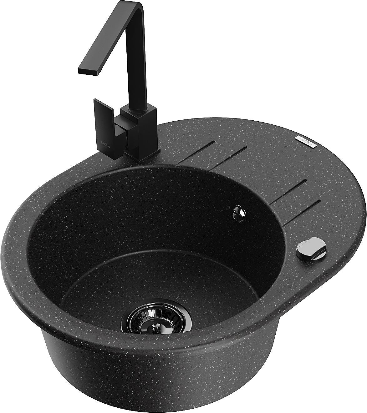 Mexen Kevin fregadero de granito de 1 seno con escurridor y grifo de cocina Rita, metálico negro/plata - 6517-73-670300-70-B