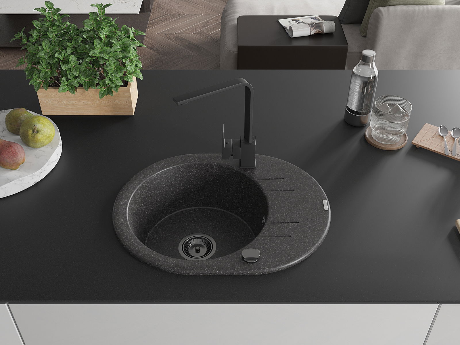 El fregadero está hecho de granito de alta calidad. Constituye un complemento elegante y, sobre todo, práctico para cualquier cocina, independientemente de su estilo. La alta calidad y durabilidad del granito aseguran un uso durante muchos años.