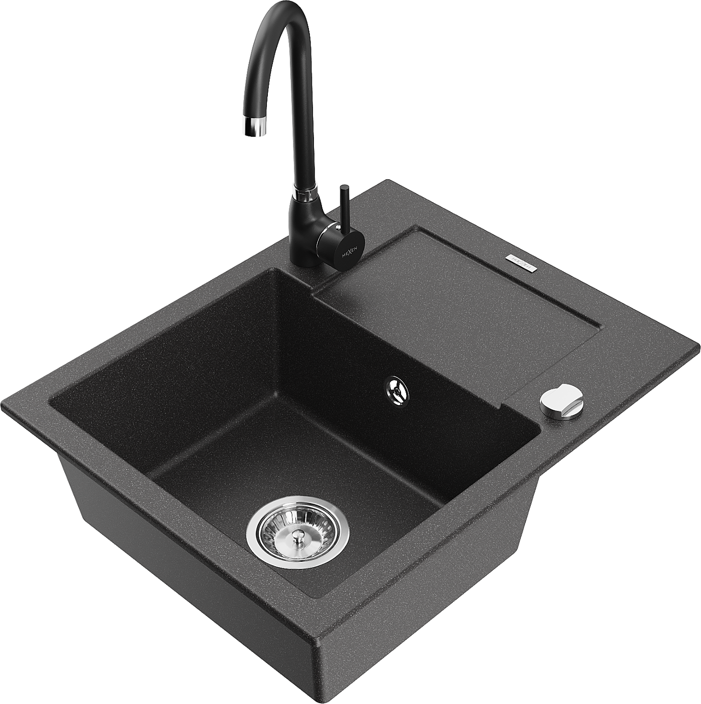 Mexen Enzo fregadero de granito de 1 cubeta con escurridor y grifo de cocina Telma, negro moteado - 6506-76-670200-70