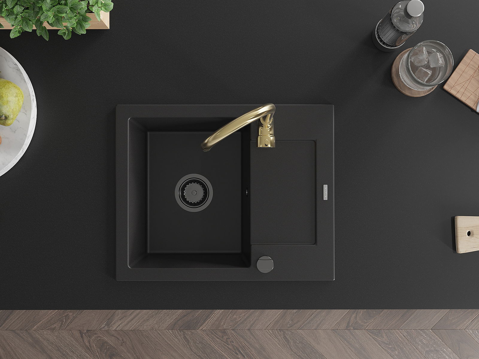 Mexen Enzo fregadero de granito de 1 seno con escurridor y grifo de cocina Telma, negro - 6506-77-670200-50-B