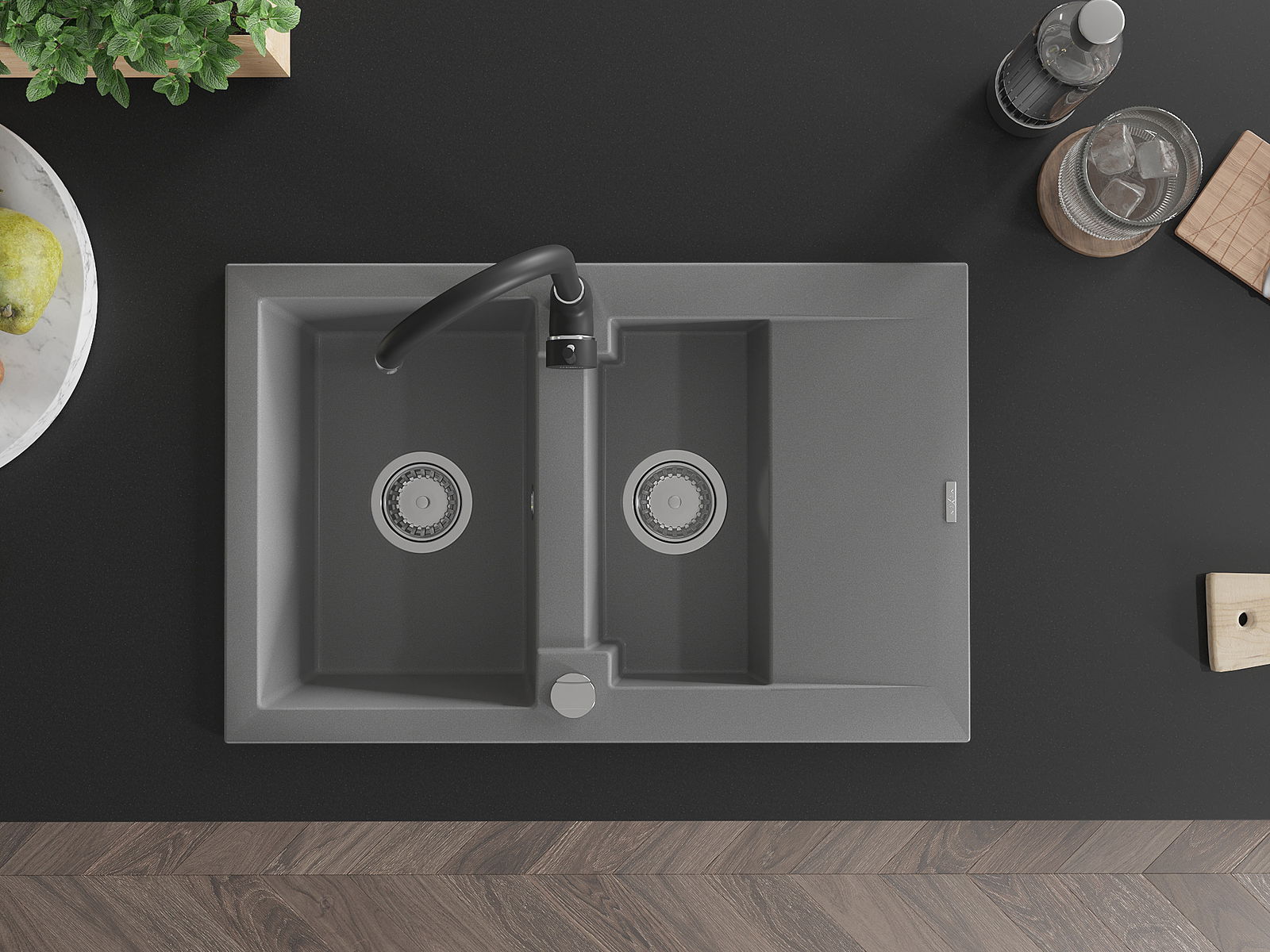 El fregadero está hecho de granito de alta calidad. Es un complemento elegante y, sobre todo, práctico para cualquier cocina, independientemente de su estilo. La alta calidad y durabilidad del granito aseguran un uso prolongado durante años.