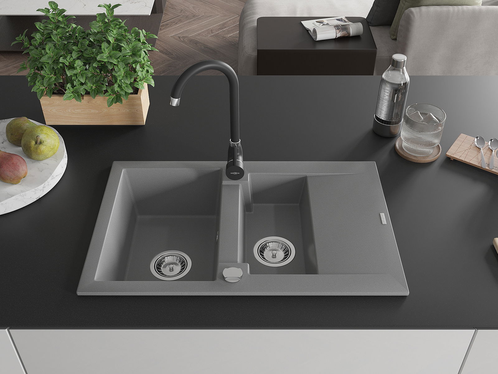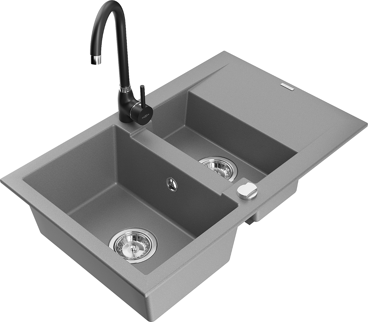 Mexen Gaspar fregadero de granito de 1,5 senos con escurridor y grifo de cocina Telma, gris - 6507-71-670200-70