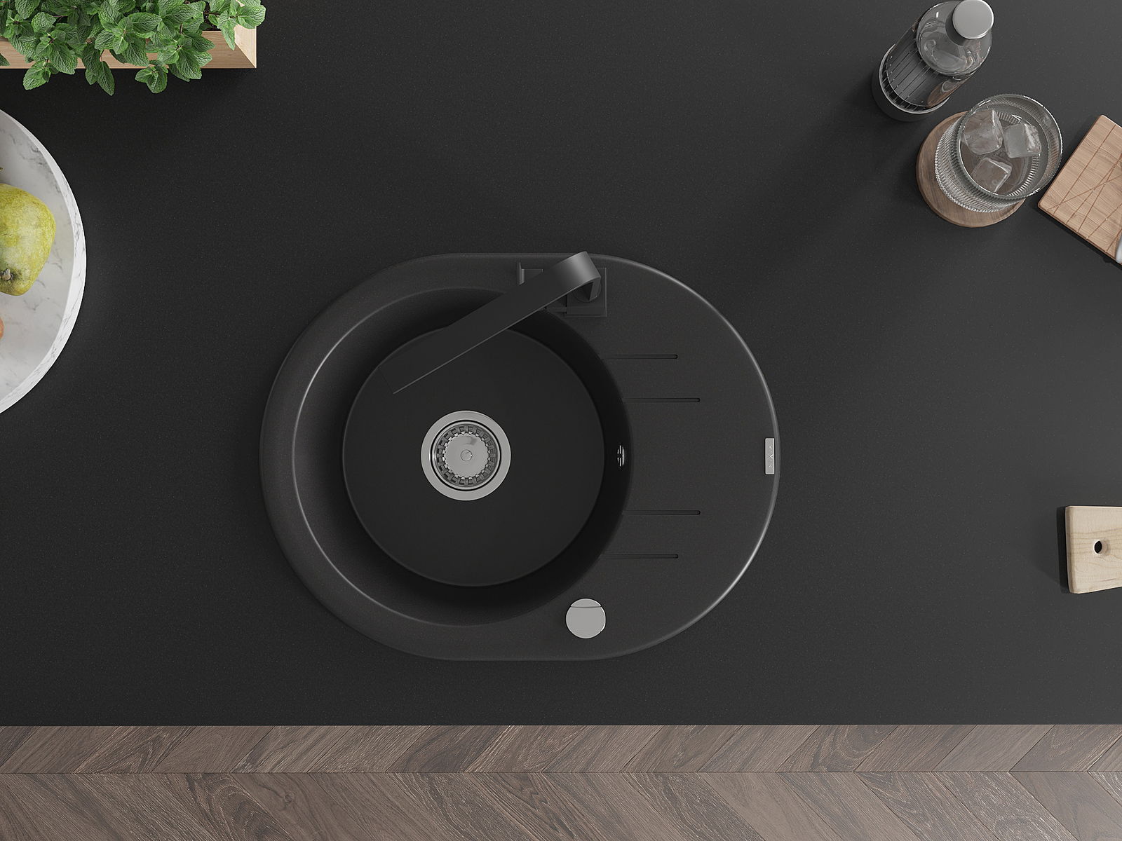 El fregadero está hecho de granito de alta calidad. Constituye un complemento elegante y, sobre todo, práctico para cualquier cocina, independientemente de su estilo. La alta calidad y durabilidad del granito aseguran un uso durante muchos años.