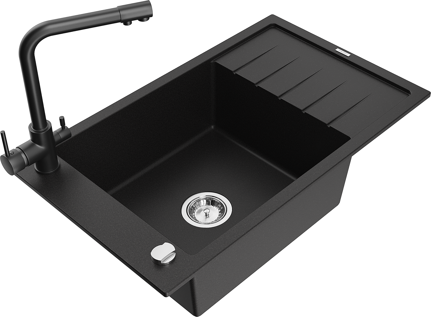 El fregadero está hecho de granito de alta calidad. Constituye un complemento elegante y, sobre todo, práctico para cualquier cocina, independientemente de su estilo. La alta calidad y durabilidad del granito aseguran un uso durante muchos años.