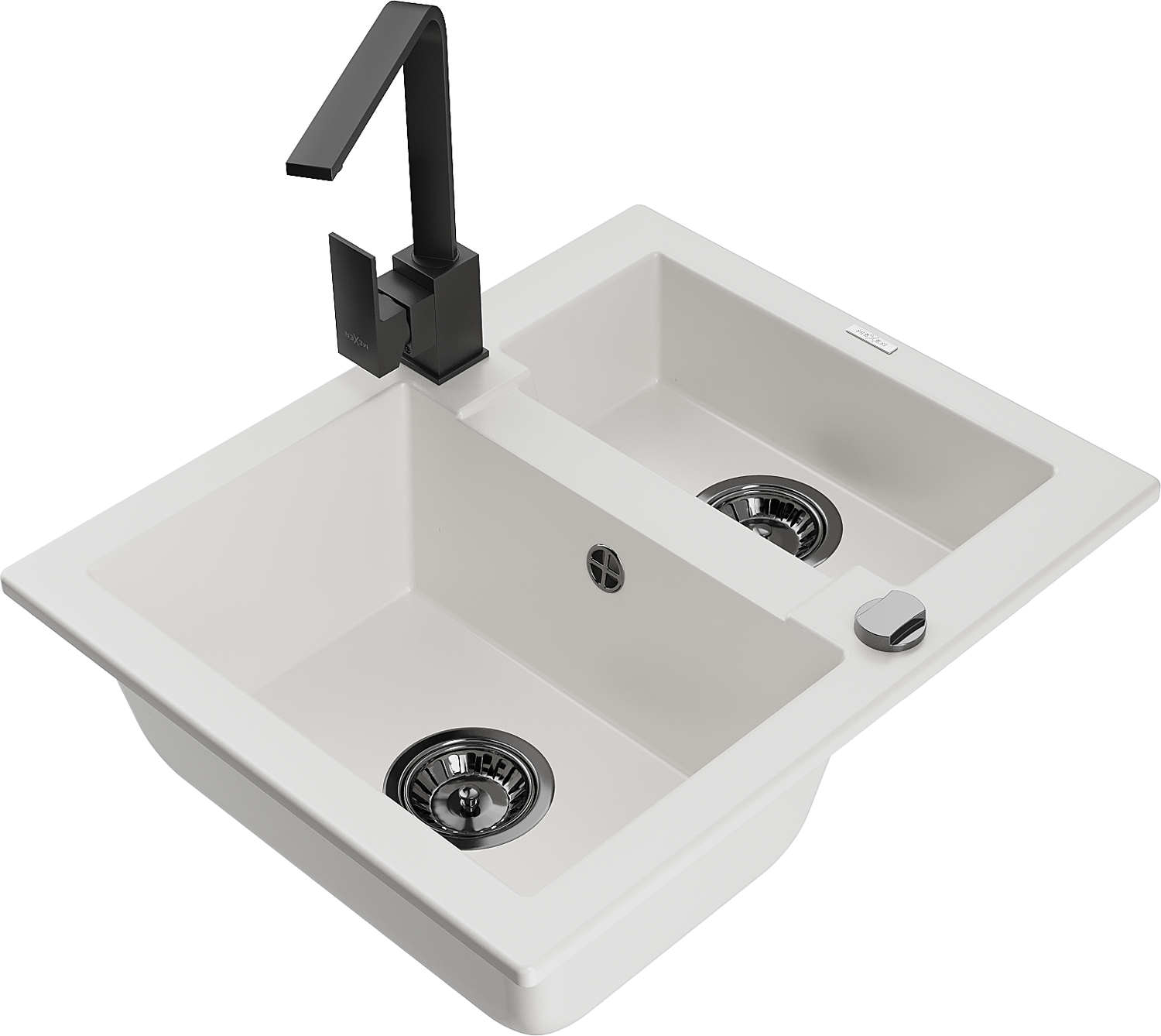Mexen Carlos fregadero de granito de 1,5 senos con grifo de cocina Rita, blanco - 6518-20-670300-70