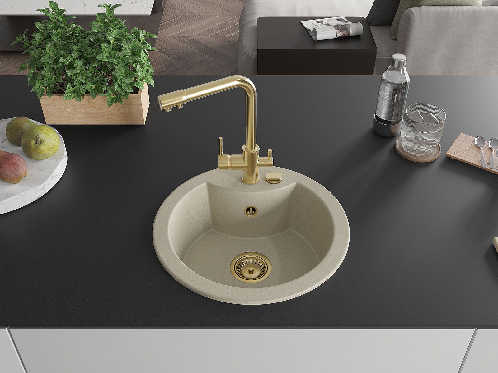 El fregadero está hecho de granito de alta calidad. Constituye un complemento elegante y, sobre todo, práctico para cualquier cocina, independientemente de su estilo. La alta calidad y durabilidad del granito aseguran un uso durante muchos años.