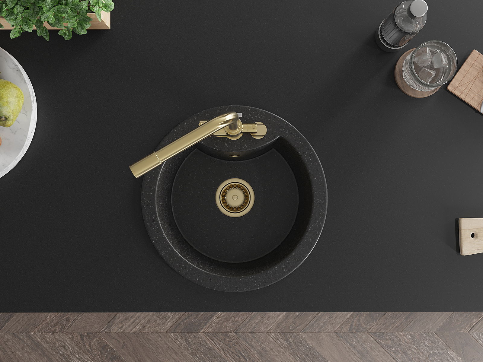 El fregadero está hecho de granito de alta calidad. Es un complemento elegante y, sobre todo, práctico para cualquier cocina, independientemente de su estilo. La alta calidad y durabilidad del granito aseguran un uso prolongado durante años.