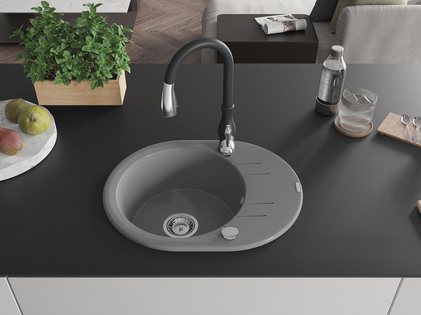 El fregadero está hecho de granito de alta calidad. Constituye un complemento elegante y, sobre todo, práctico para cualquier cocina, independientemente de su estilo. La alta calidad y durabilidad del granito aseguran un uso durante muchos años.
