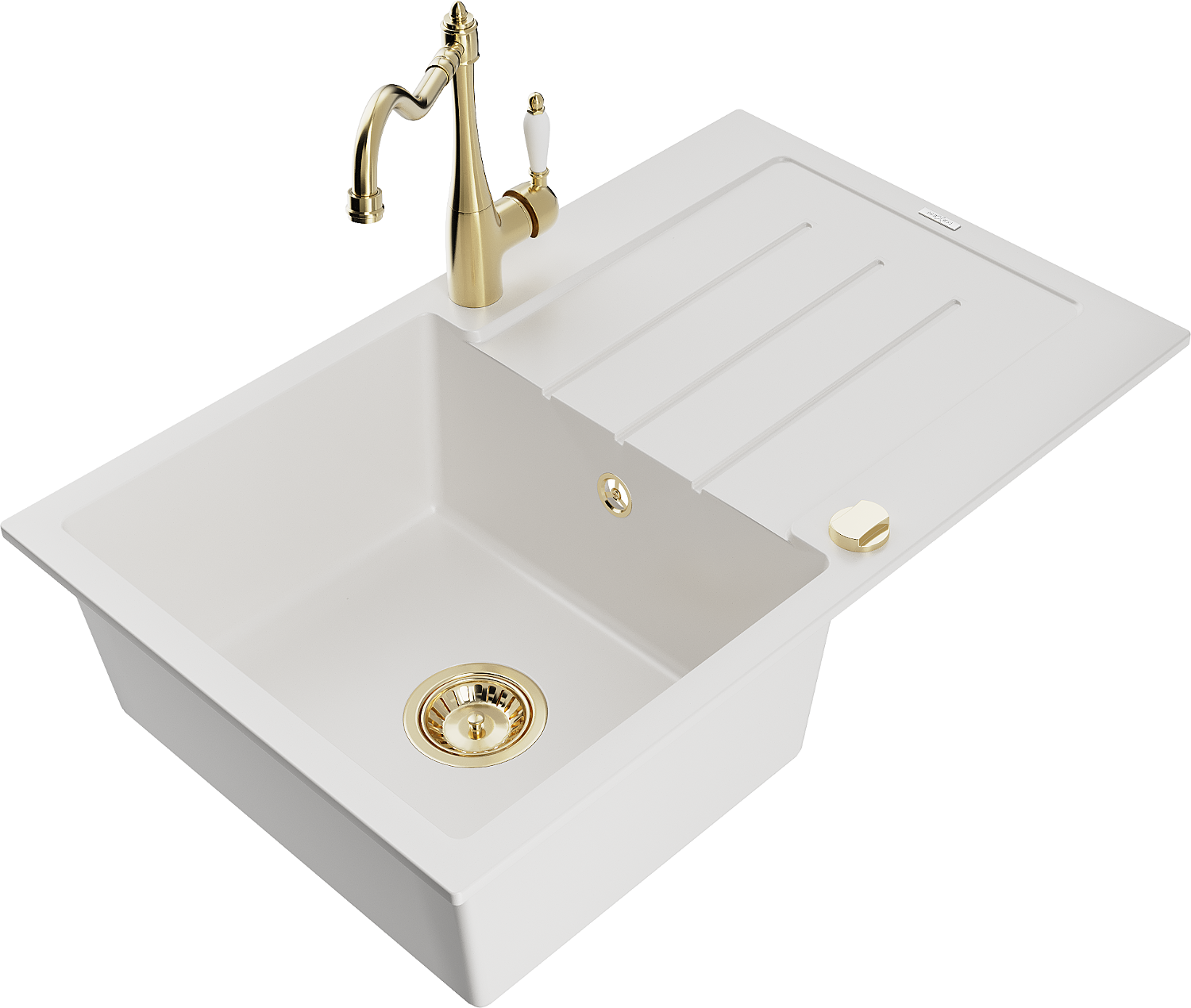 Mexen Bruno fregadero de granito de 1 cubeta con escurridor y grifo de cocina Carla, blanco - 6513-20-670700-50