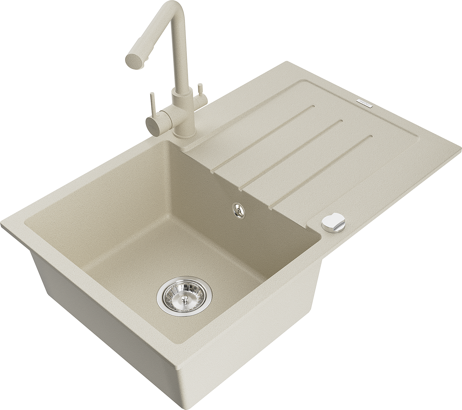 Mexen Bruno fregadero de granito de 1 seno con escurridor y grifo de cocina Duero, beige - 6513-69-671600-69