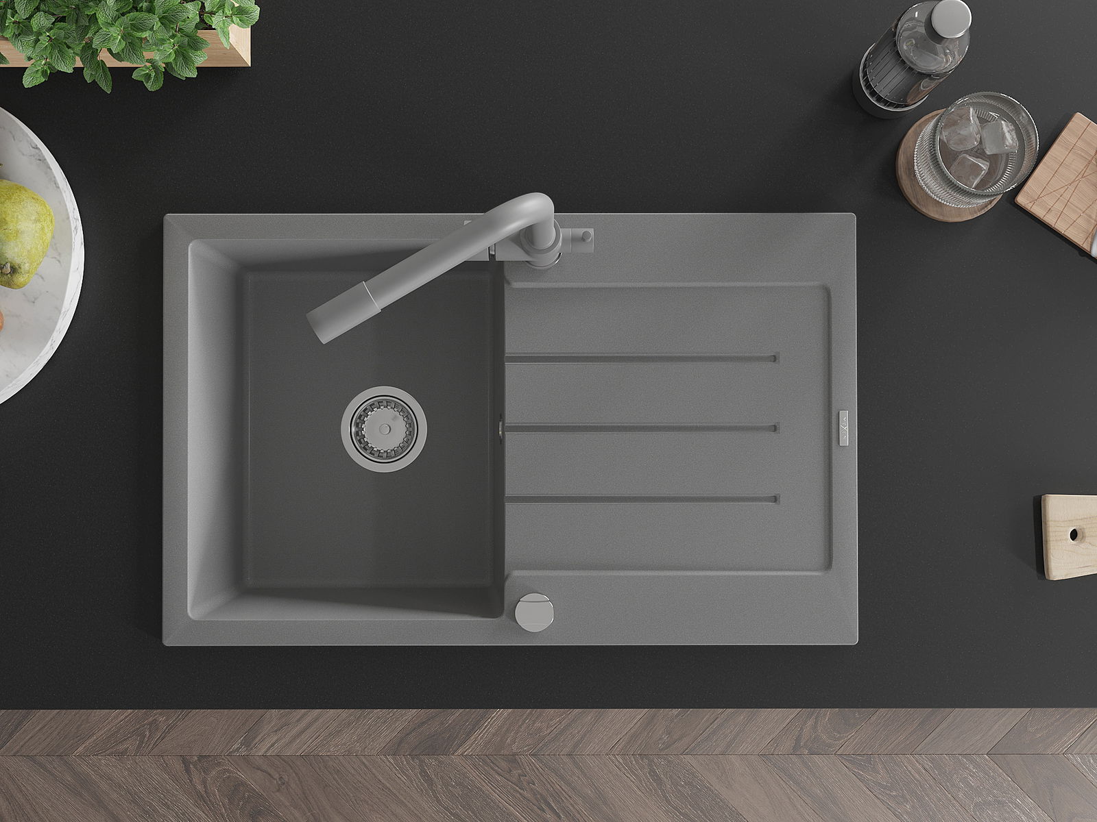 El fregadero está hecho de granito de alta calidad. Constituye un complemento elegante y, sobre todo, práctico para cualquier cocina, independientemente de su estilo. La alta calidad y durabilidad del granito aseguran un uso durante muchos años.