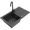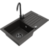 Mexen Pablo fregadero de granito de 1 seno con escurridor y grifo de cocina Telma, negro/plateado - 6510-73-670200-70-B